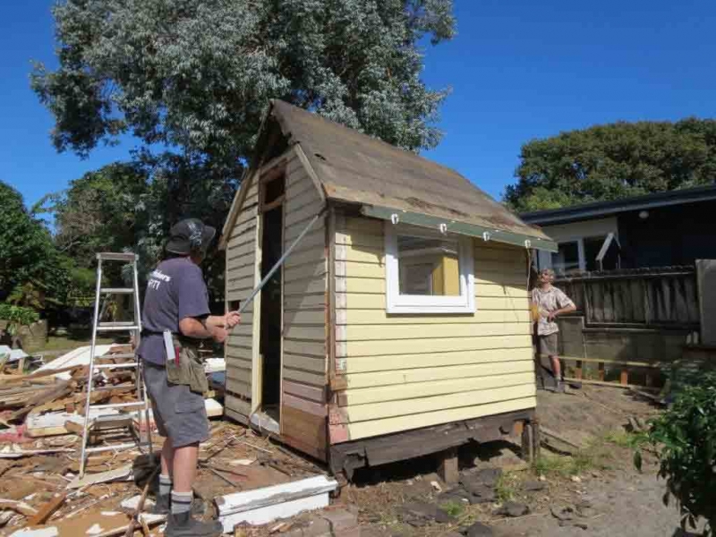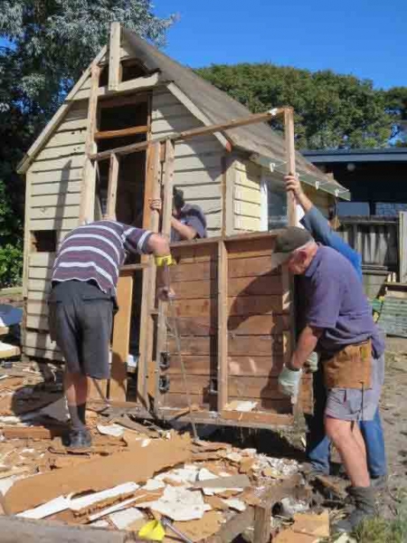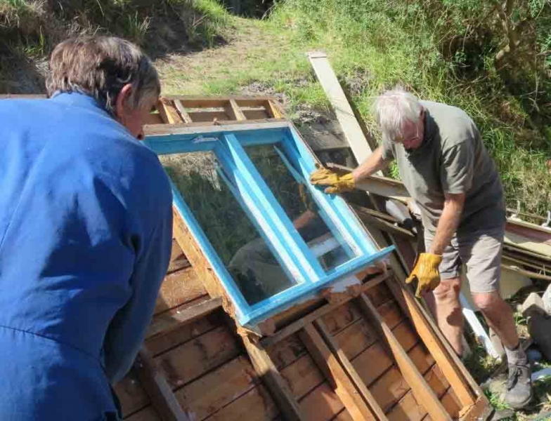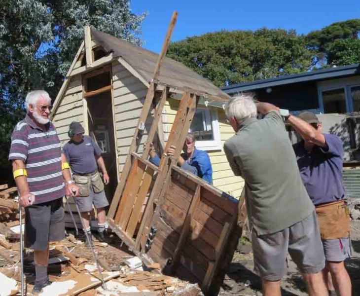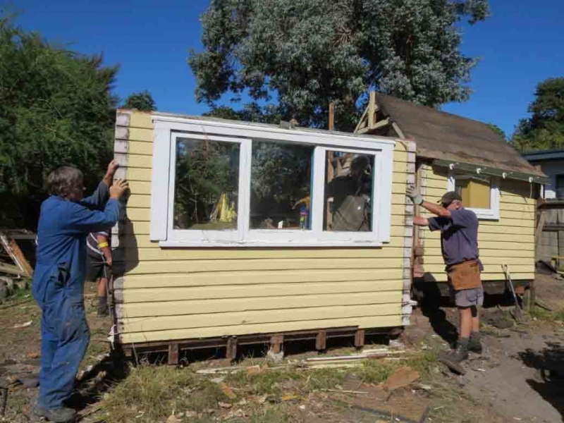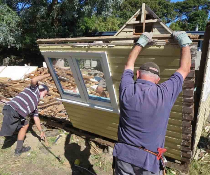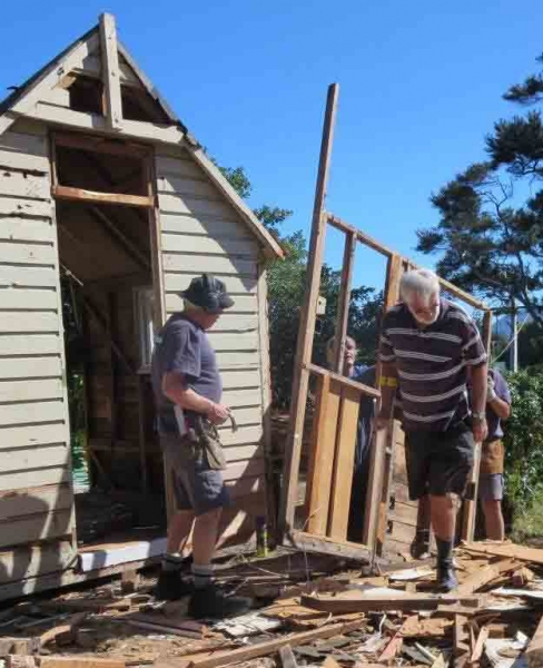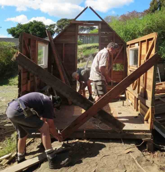 A house comprising several huts is to be dismantled by the MenzShed Kapiti, relocated at their shed site, individual huts at to be refurbished to their original style and then delivered to the camp site.