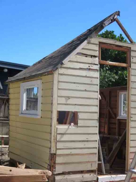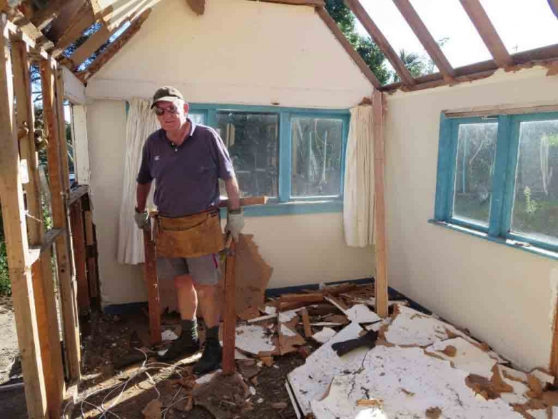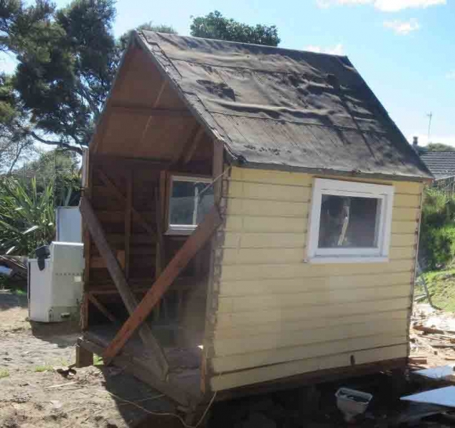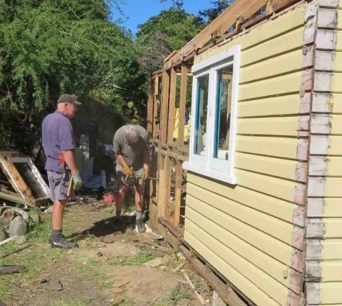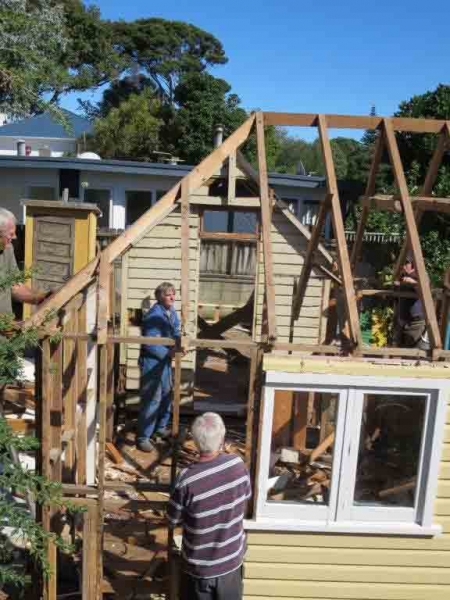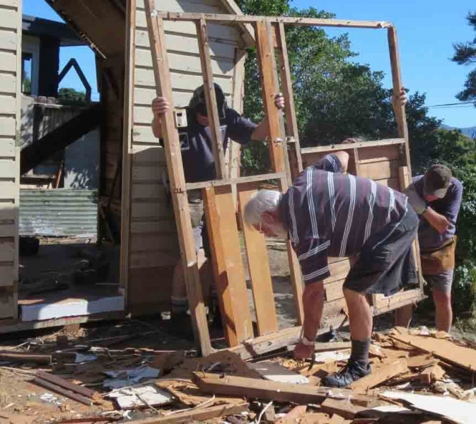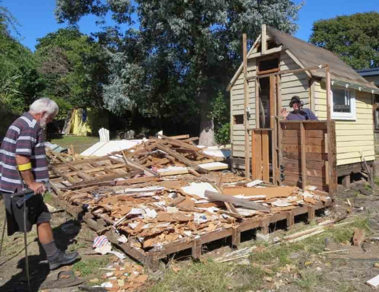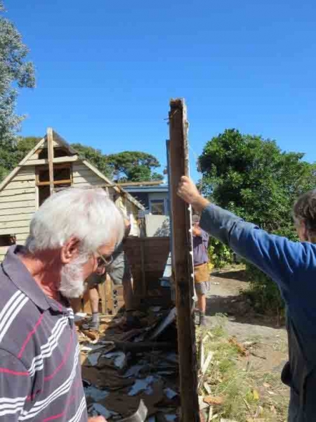 A house comprising several huts is to be dismantled by the MenzShed Kapiti, relocated at their shed site, individual huts at to be refurbished to their original style and then delivered to the camp site.